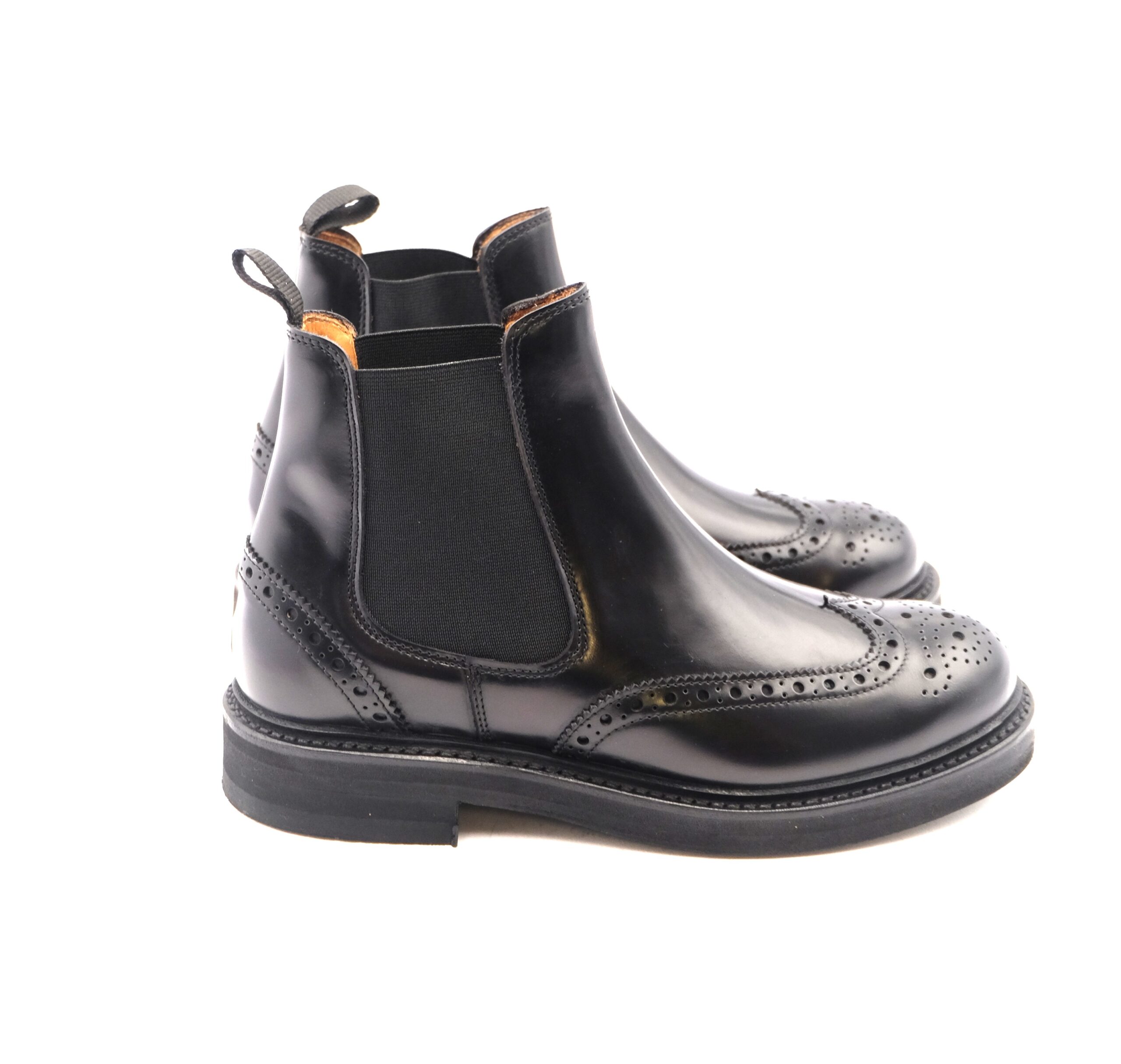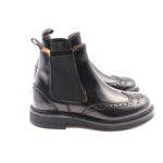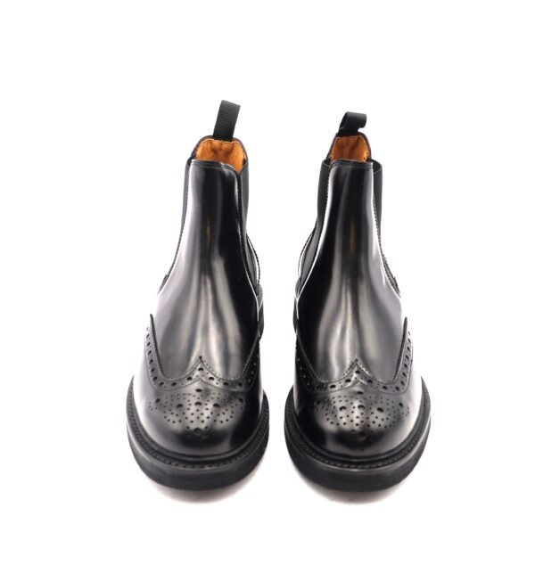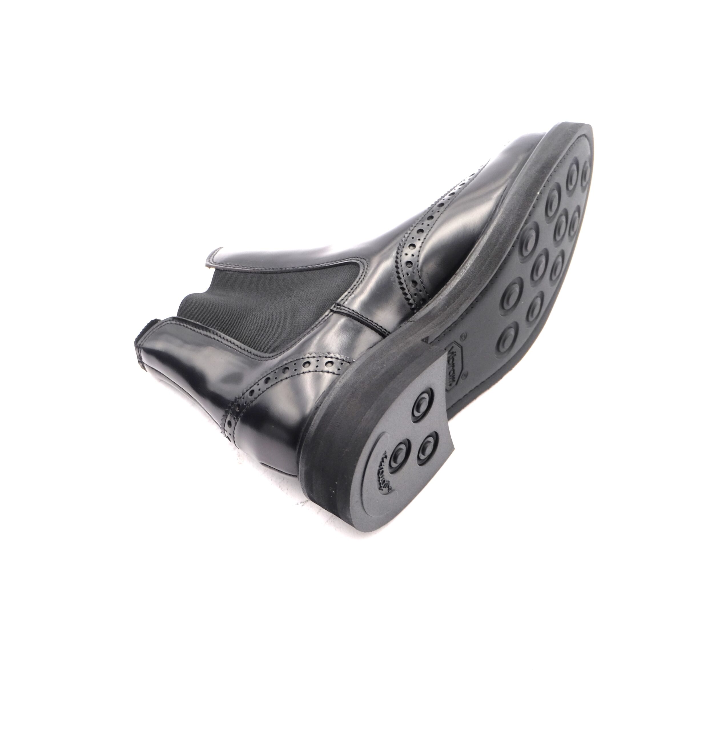 Chelsea boot in pelle nera con disegno a coda di rondine, sottopiede in cuoio, suola in dainite leggera e flessibile, antipioggia, calzata standard