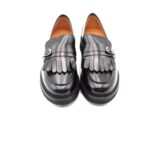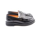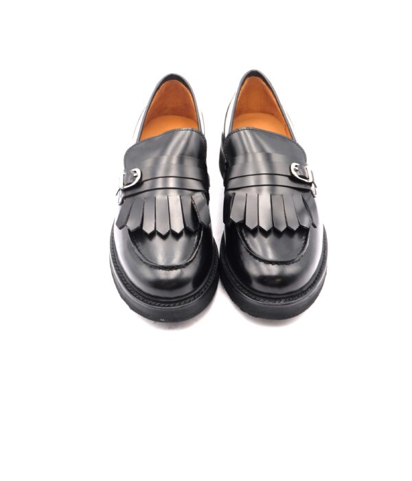 College con frangia e fibbia decorativa in pelle nera con suola in dainite leggera e flessibile, antipioggia, sottopiede in cuoio, fodera in pelle , calzata standard