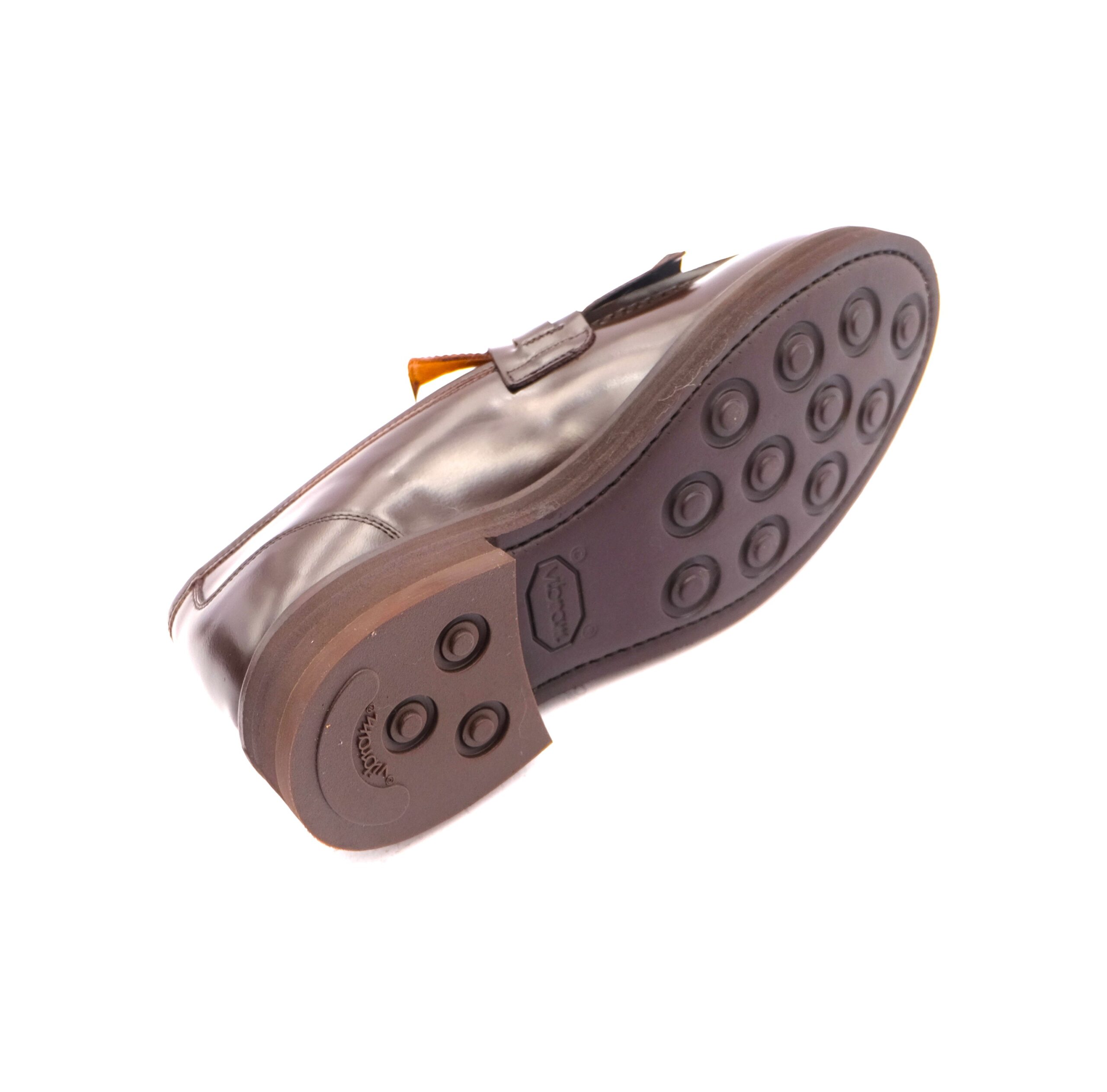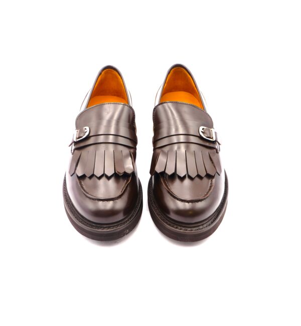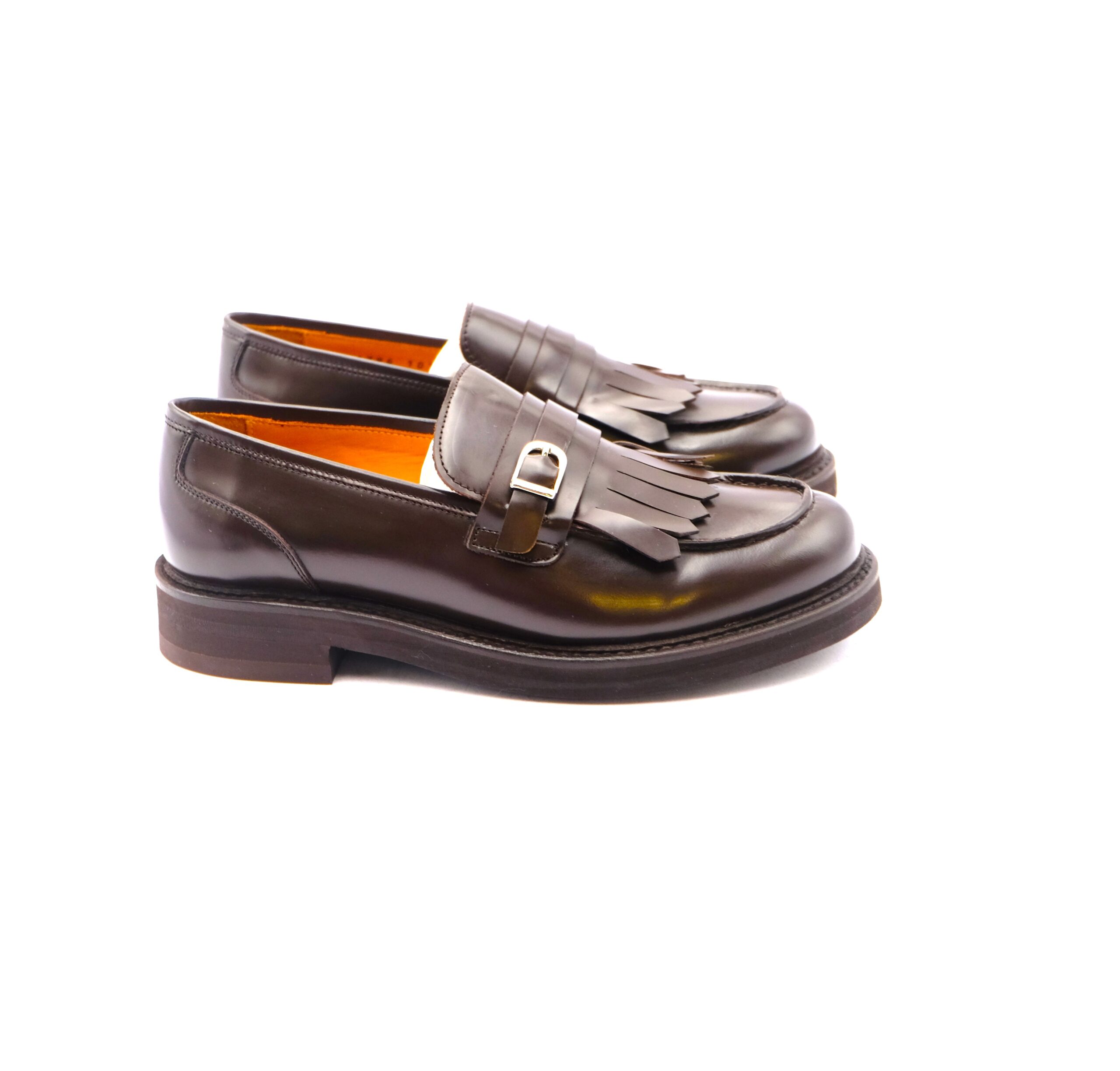 College con frangia e fibbia decorativa in pelle testa di moro con suola in dainite leggera e flessibile, antipioggia, sottopiede in cuoio, fodera in pelle , calzata standard