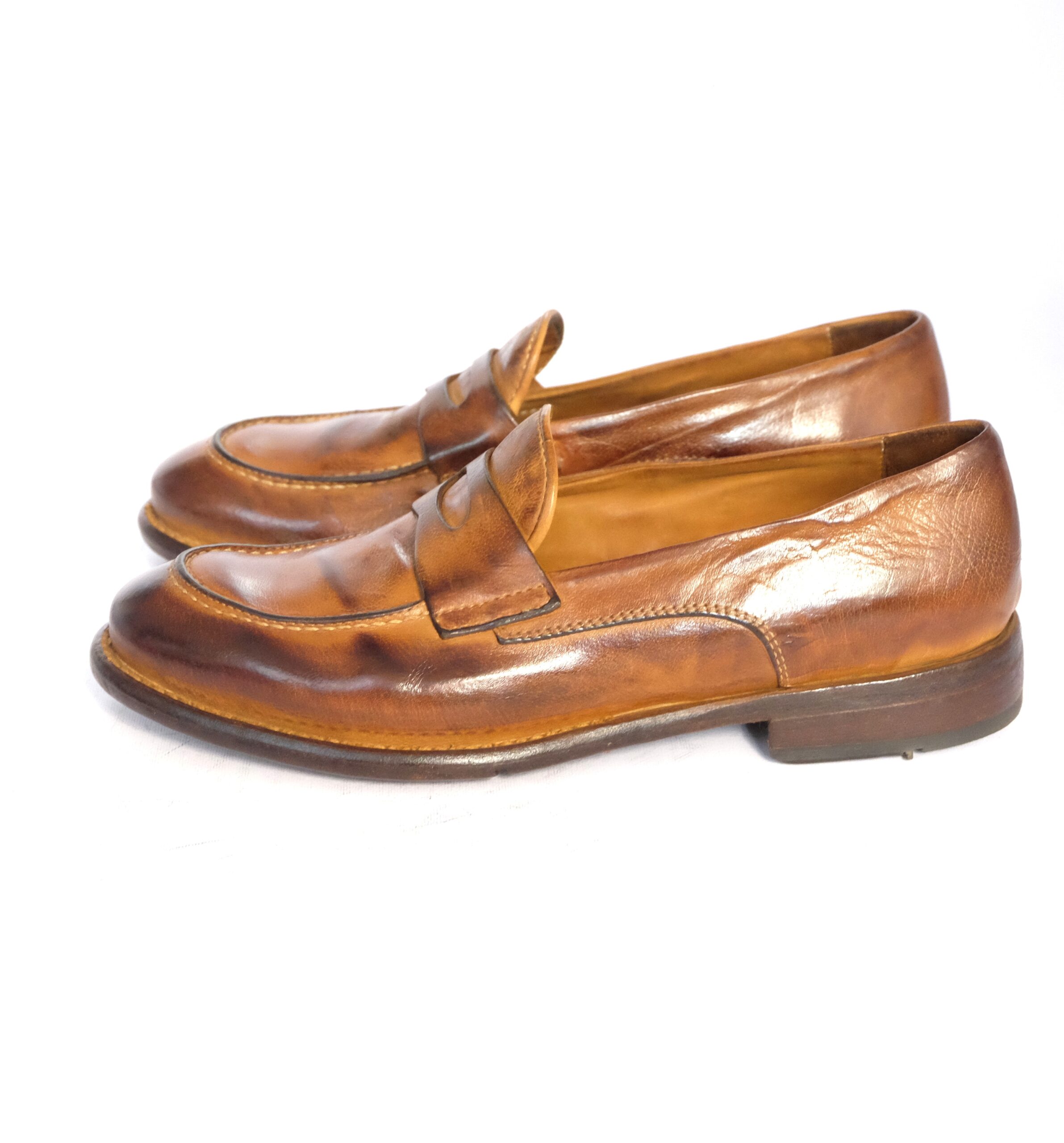 College in pelle vintage cognac , lavorazione mezza fodera, suola in cuoio flessibile antiscivolo, invecchiamo a mano dai maestri marchigiani, calzata standard