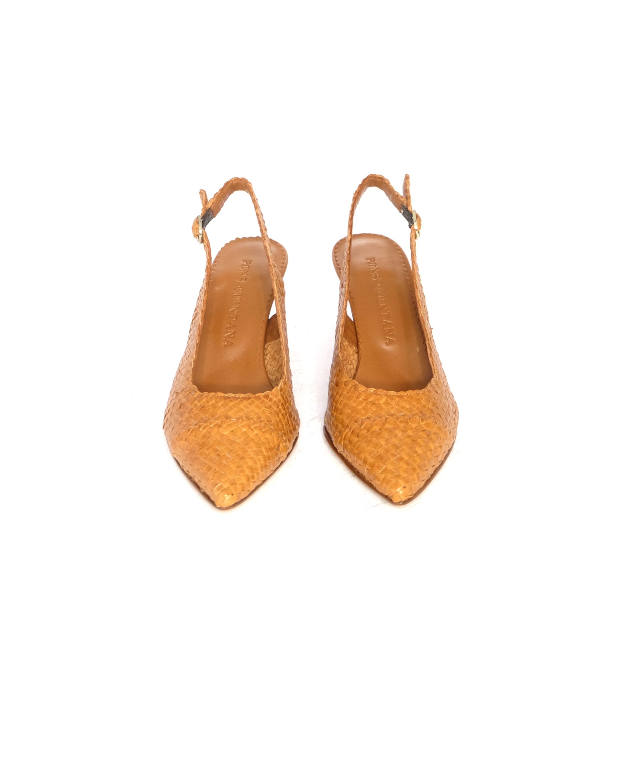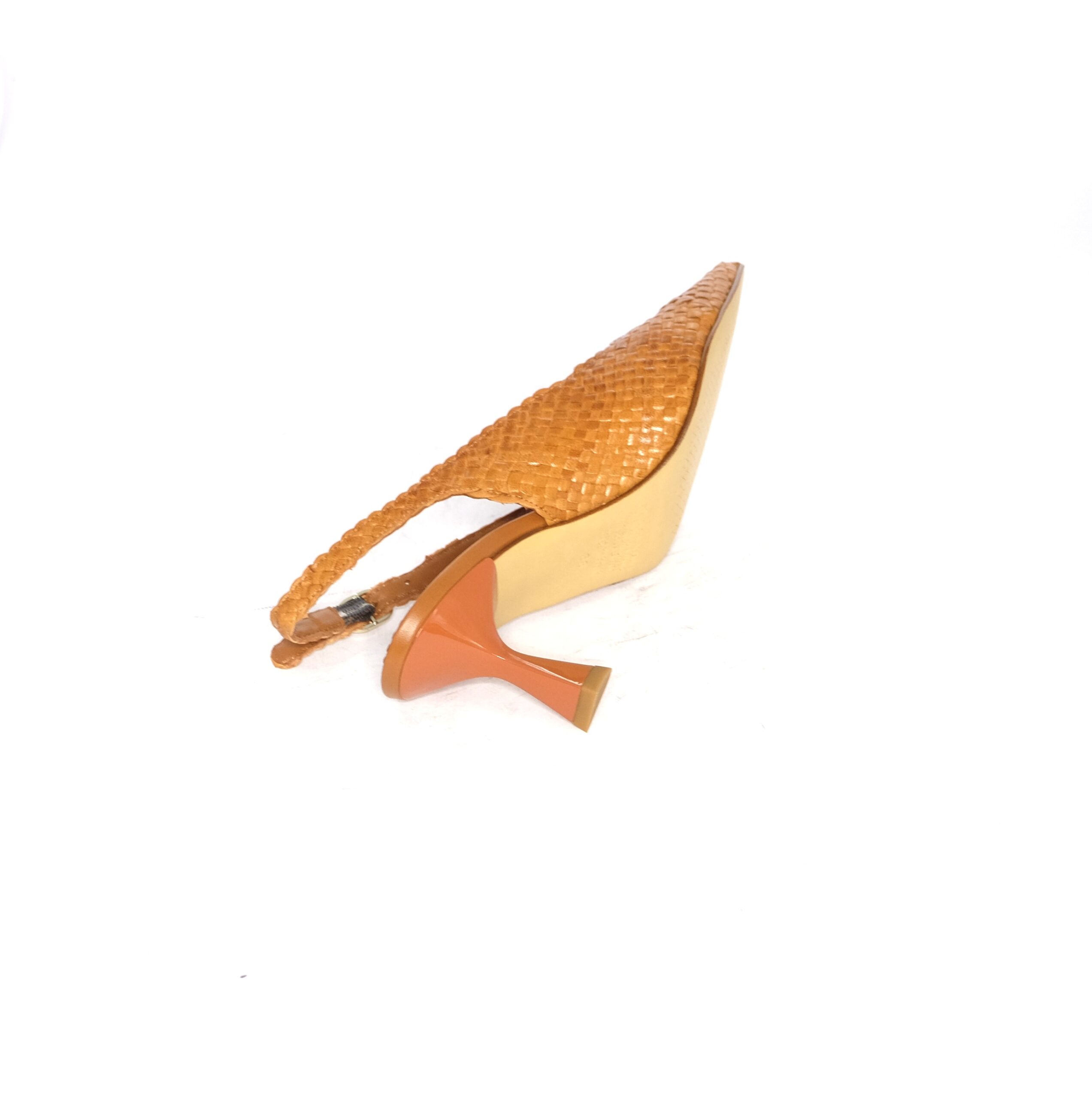 Slingback con cinturino in pelle toffè , tacco 70cm, calzata standard , suola cuoio
