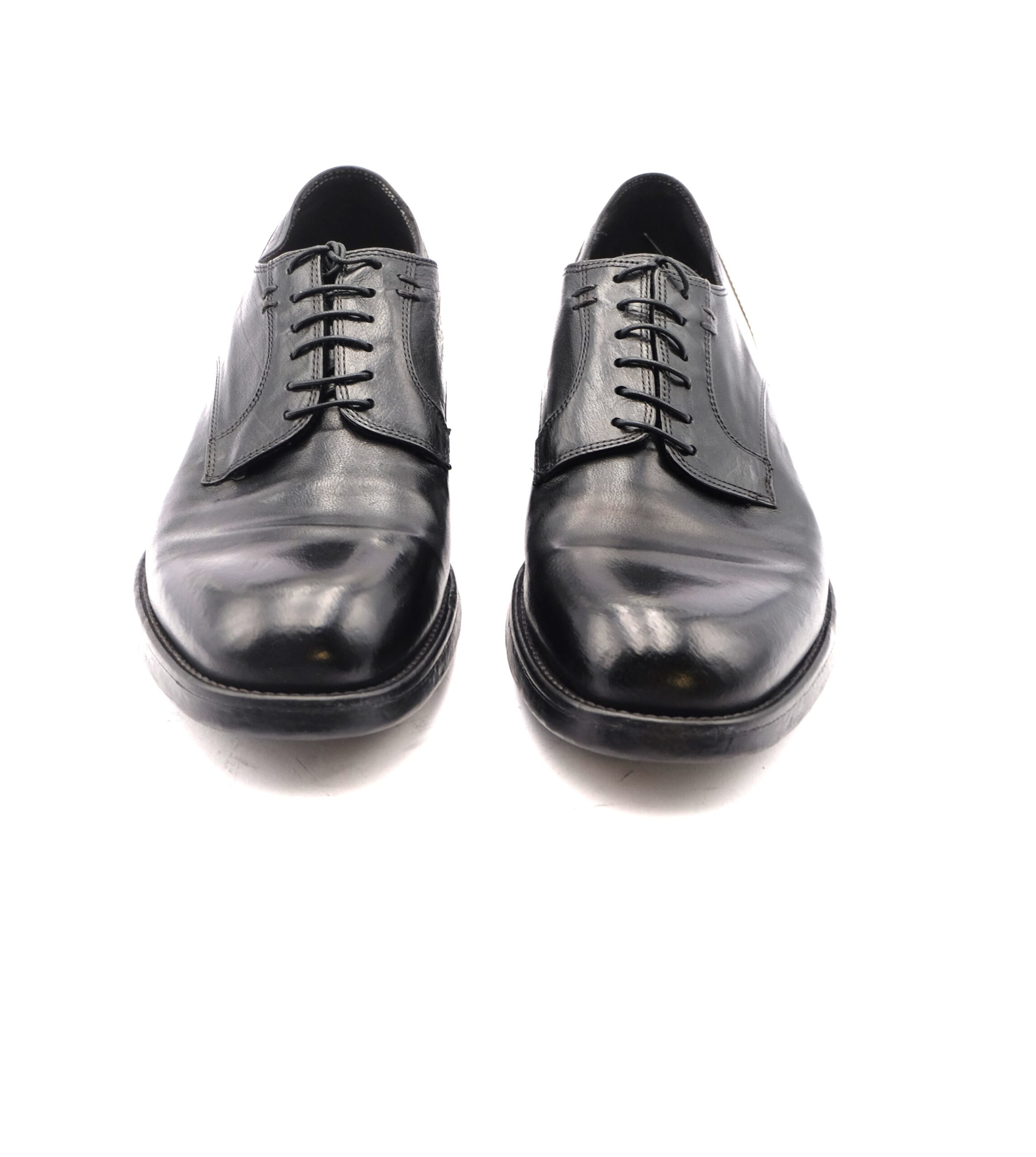 Derby in pelle bufalo nero, suola in cuoio gommato flessibile, sottopiede imbottito in pelle , calzata standard