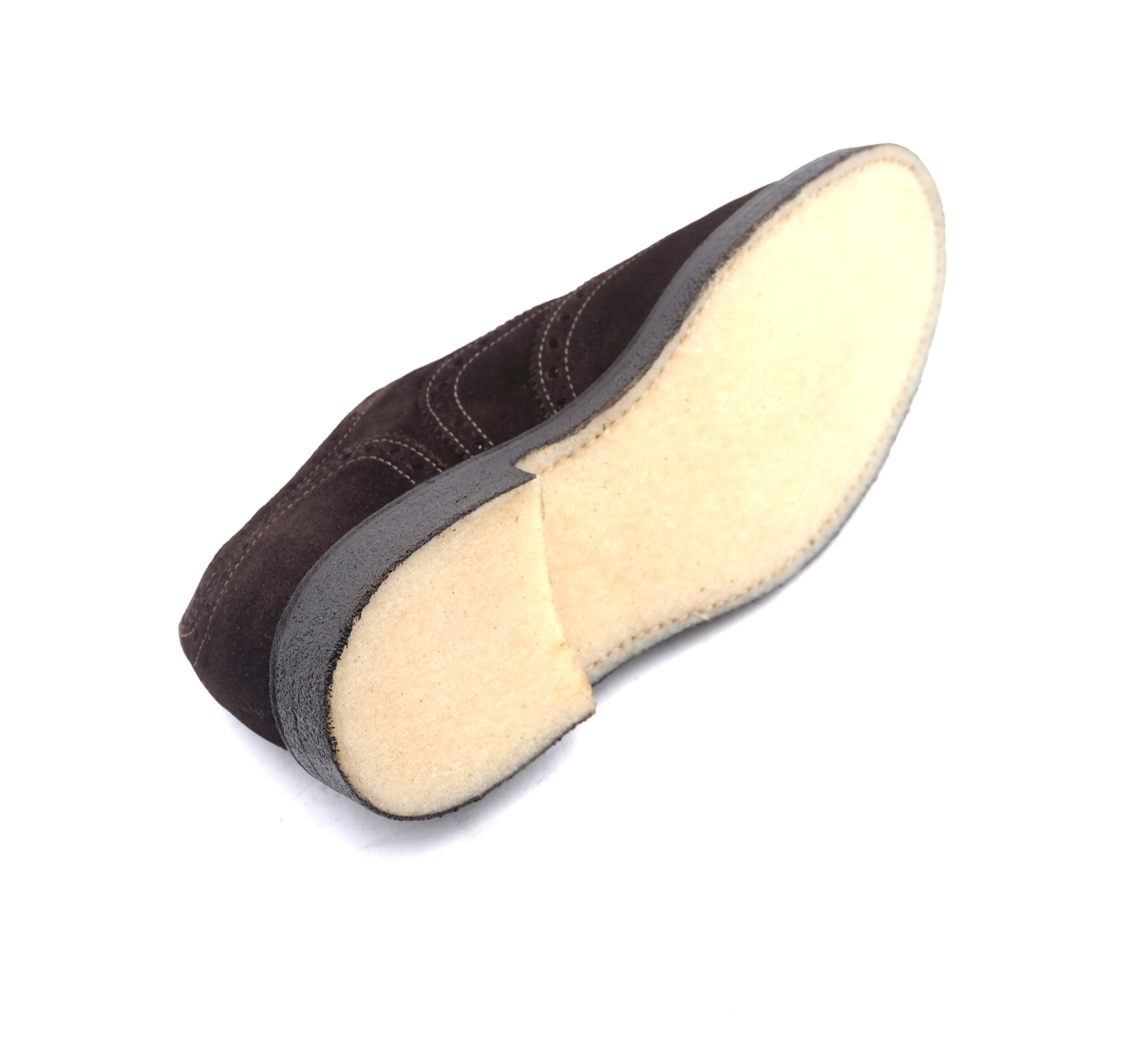 Francesina in camoscio idrorepellente testa di moro con coda di rondine, suola doppia in para vegetale, fodere in vitello, calzata standard