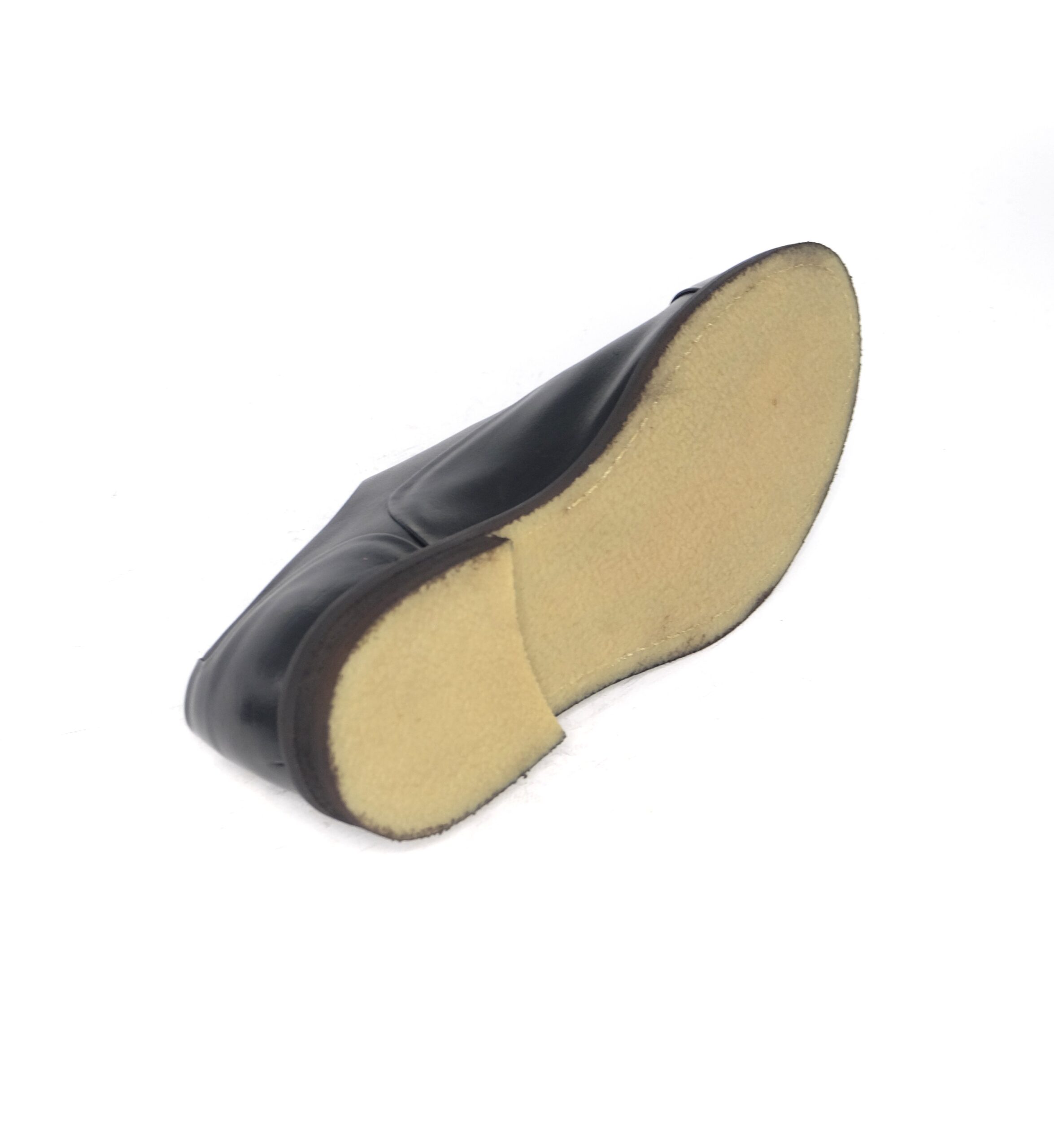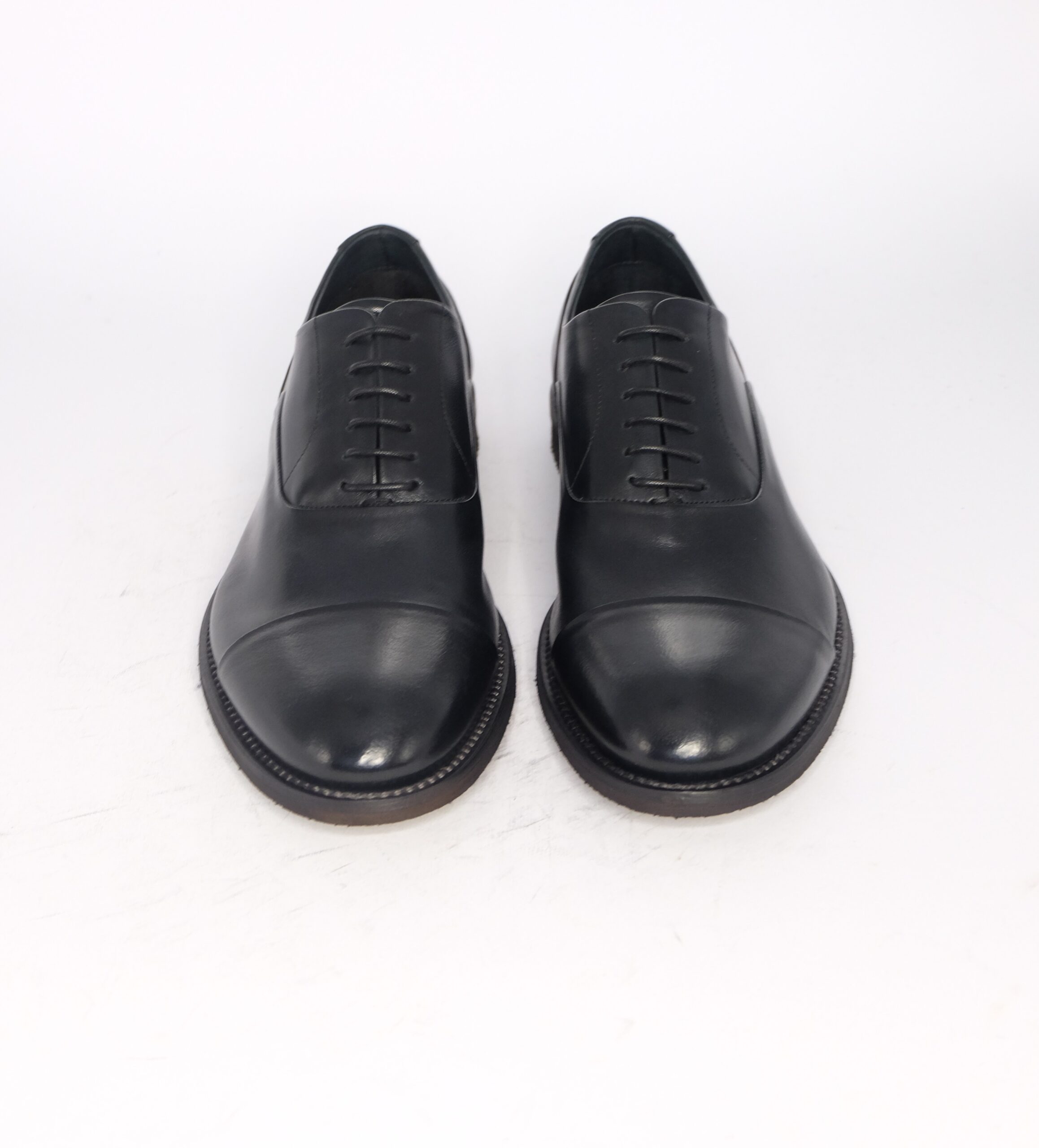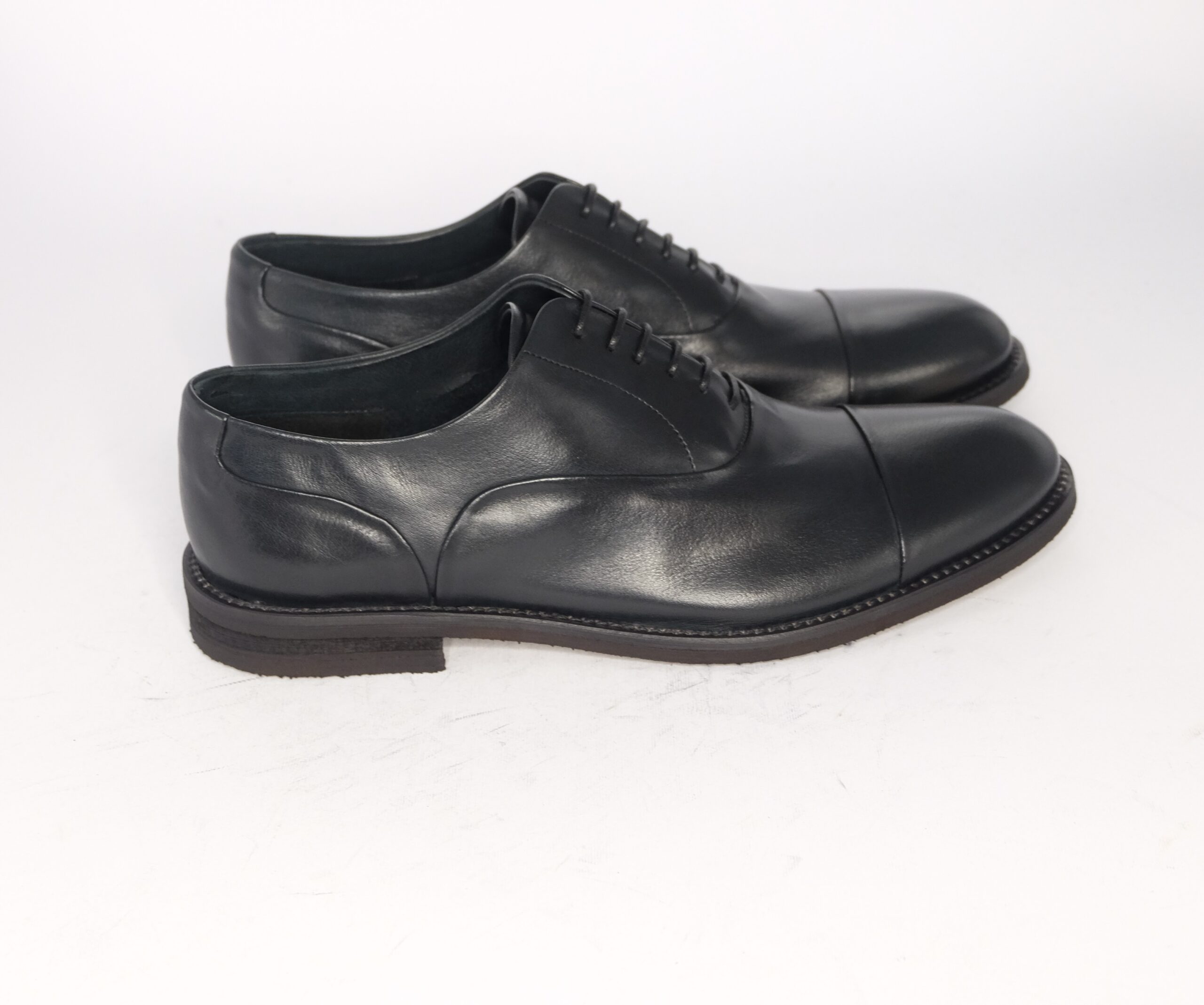 Francesina con puntale realizzata in vitello nappato nero, lavorazione blake sfoderata, suola in para vegetale flessibile ed antiscivolo, calzata standard
