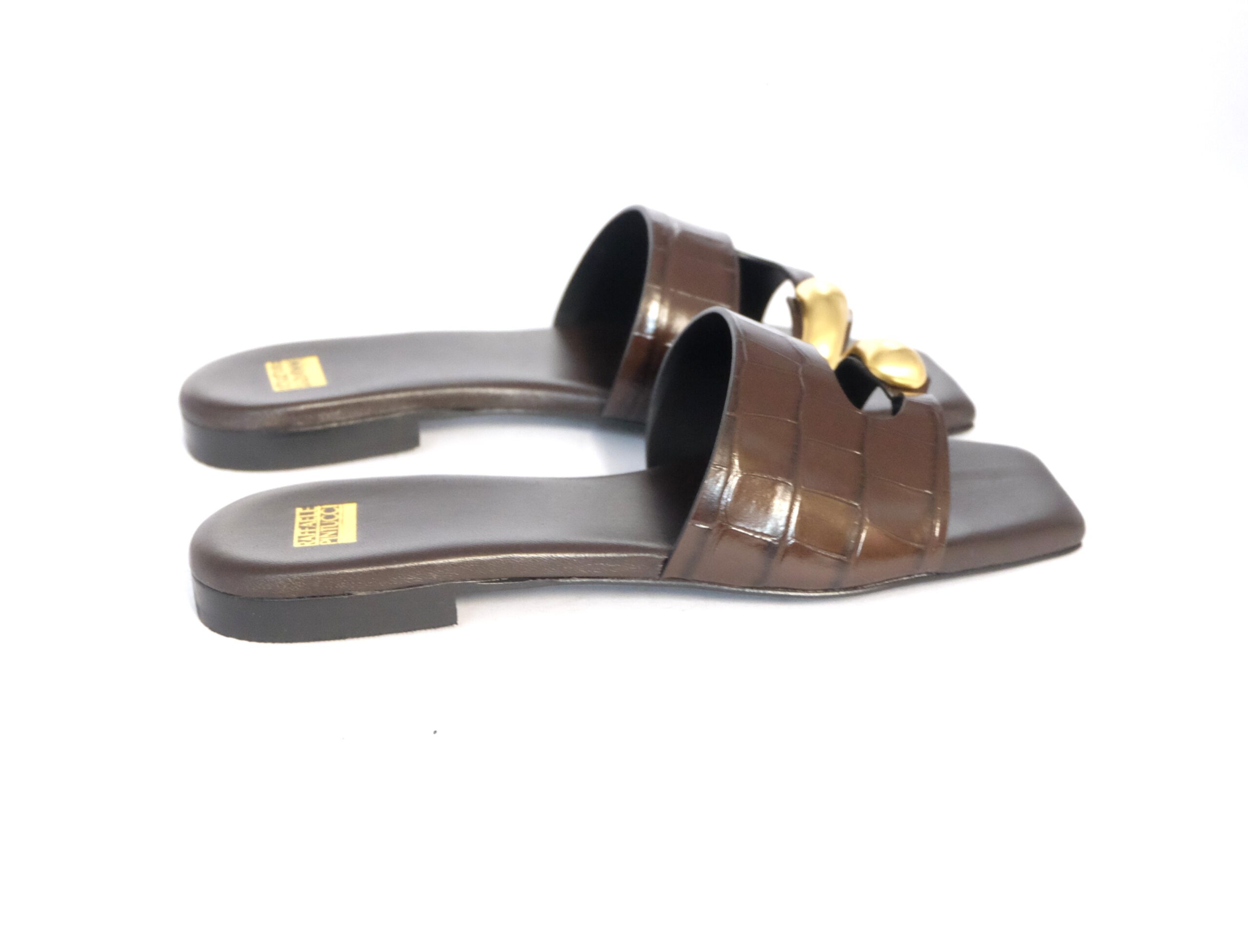 Infradito caprese in pelle stampa cocco fondente, accessorio in oro satinato, sottopiede imbottito in pelle, suola in cuoi flessibile antiscivolo, calzata standard