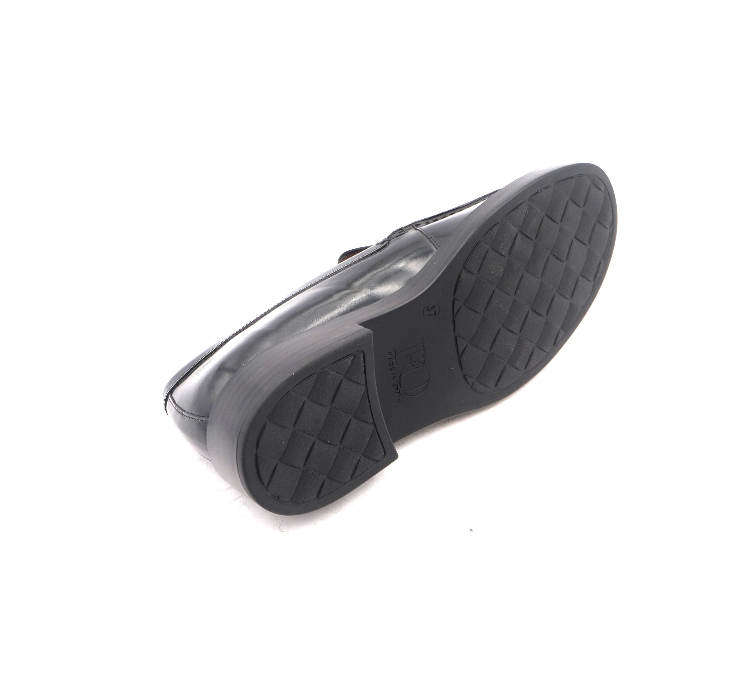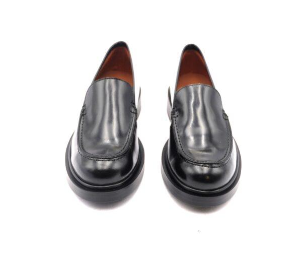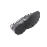 Mocassino a tomaia liscia in pelle nera con suola in gomma antiscivolo effetto cuoio, calzata standard