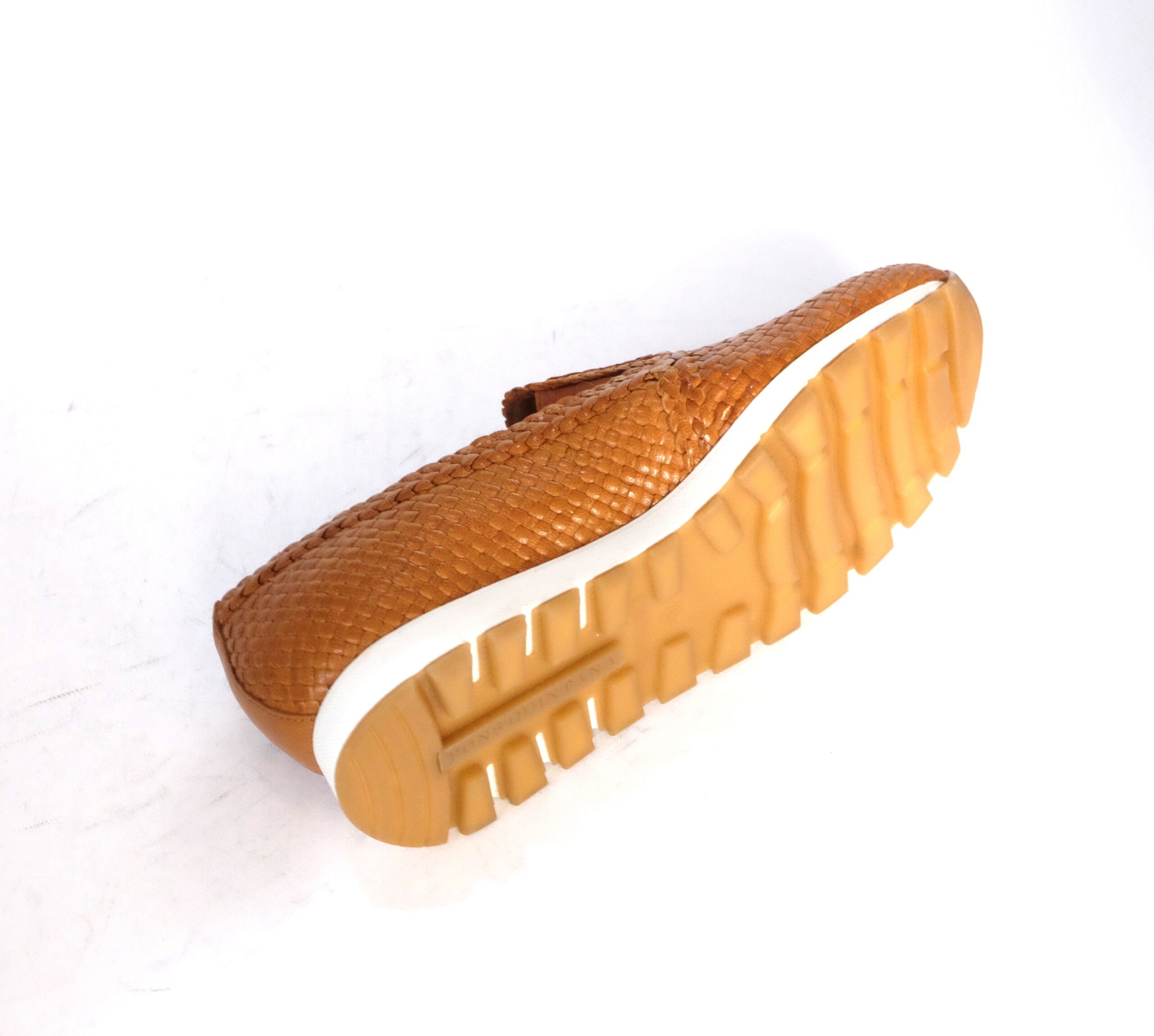 Mocassino ginnico in pelle intrecciata toffe, sottopiede imbottito, suola in gomma leggerissima e antiscivolo, calzata standard