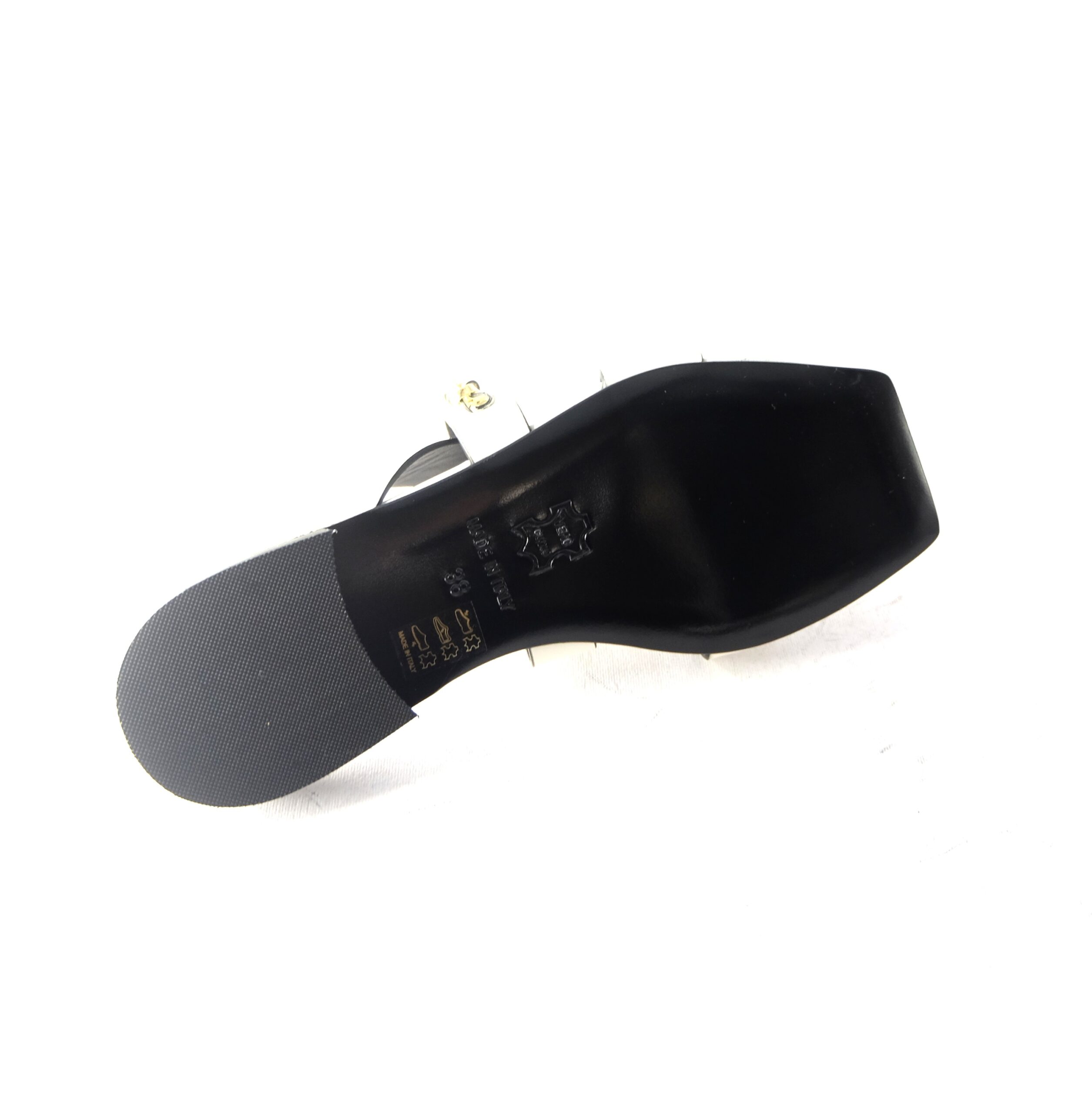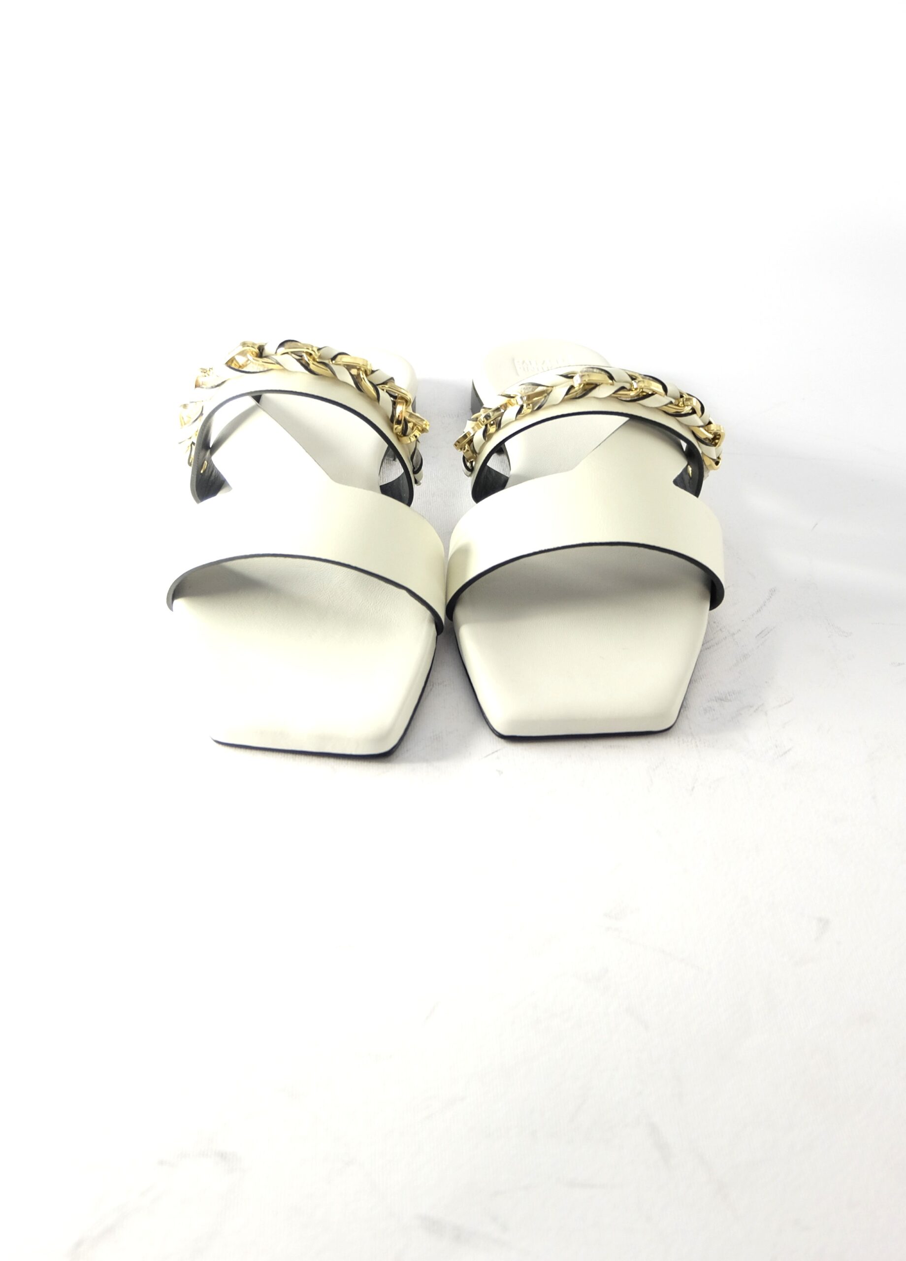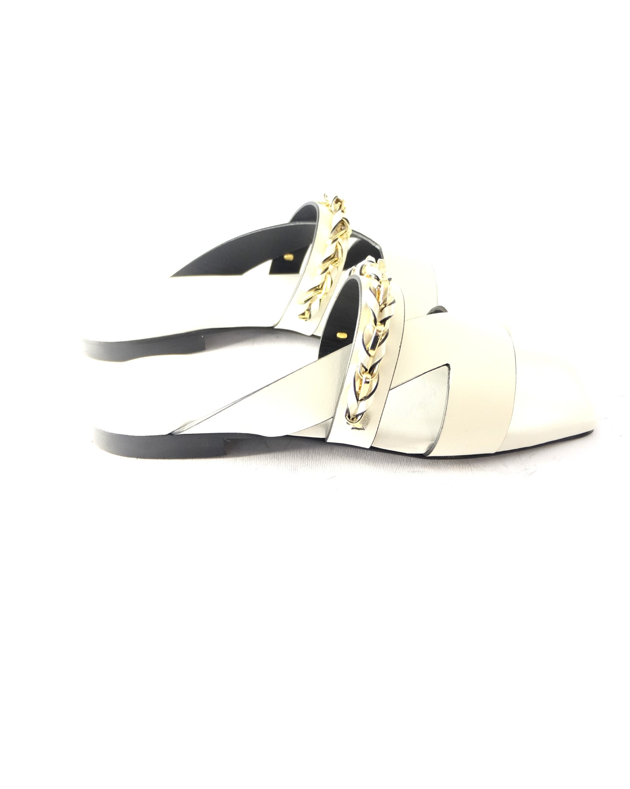 Sandalo pianella in pelle burro, accessorio catena color oro, sottopiede imbottito in pelle , suola in cuoio flessibile antiscivolo, calzata standard