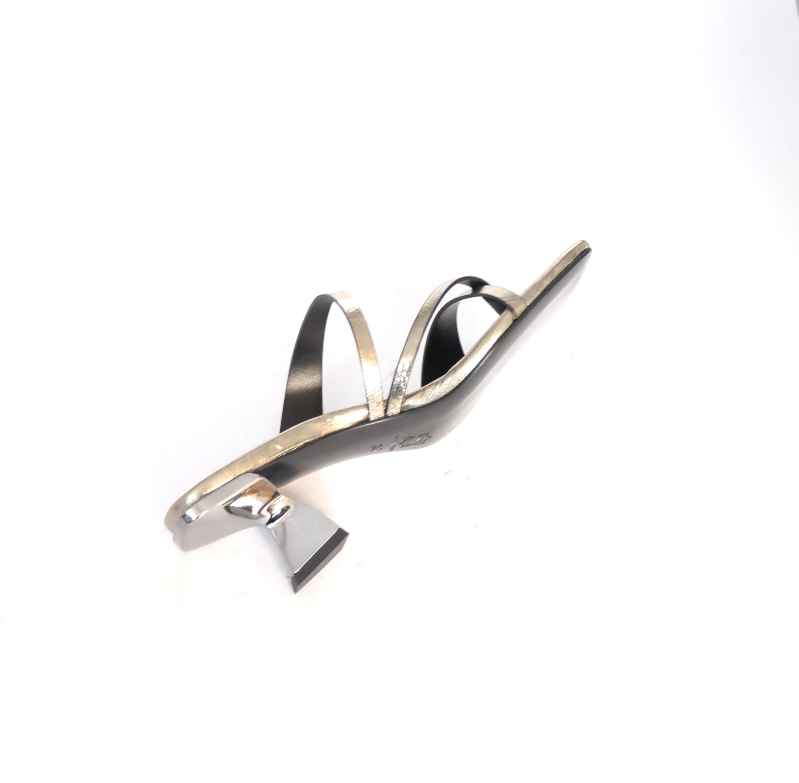 Sandalo con tacco 60, pelle laminata champagne (argento brunito) , infradito, sottopiede imbottito in pelle, suola in cuoio flessibile antiscivolo, calzata standard
