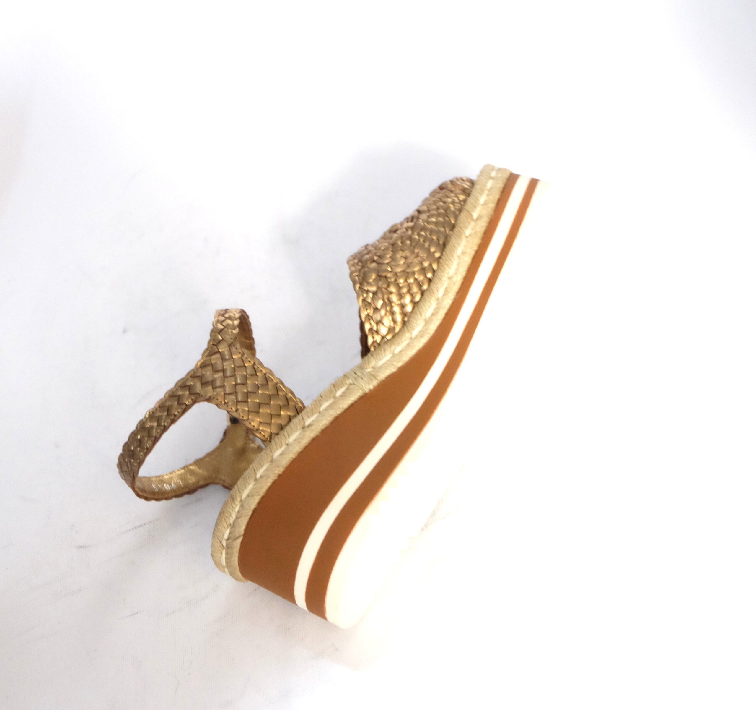 Sandalo sportivo con zeppa in altezza 6cm, profilo in corda grezza con inserti oassi, suola in gomma antiscivolo, tomaia in pelle intrecciata oassi , cinturino alla caviglia con fibbia, calzata standard
