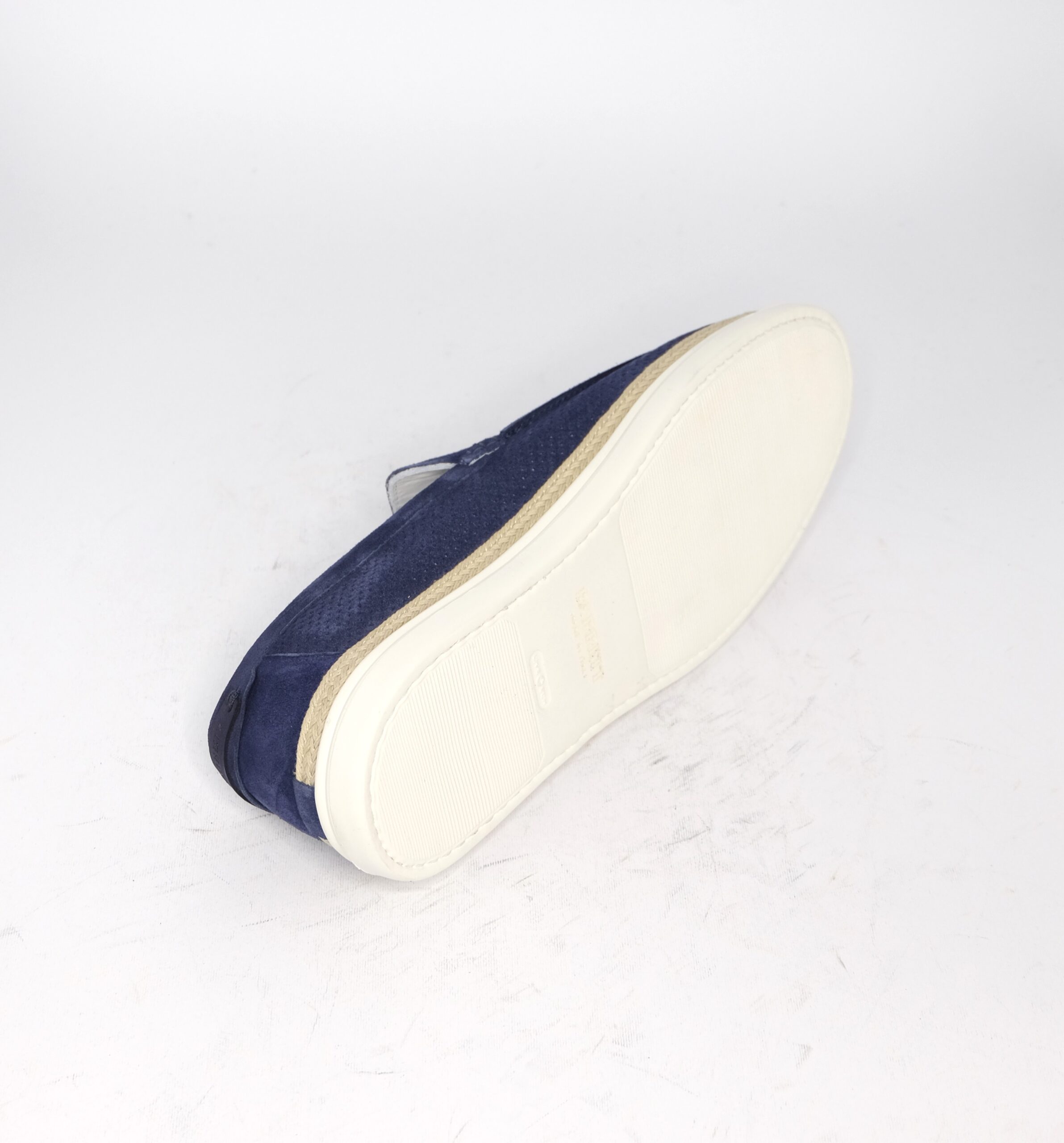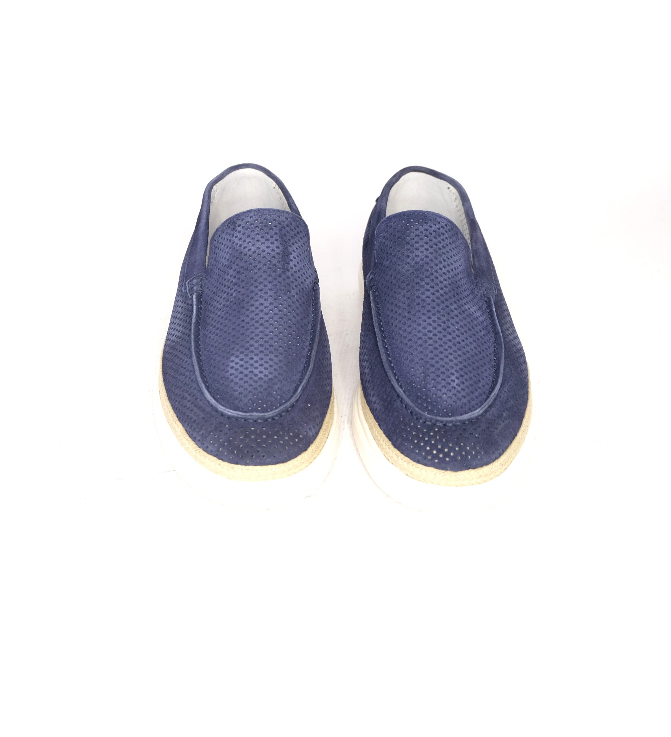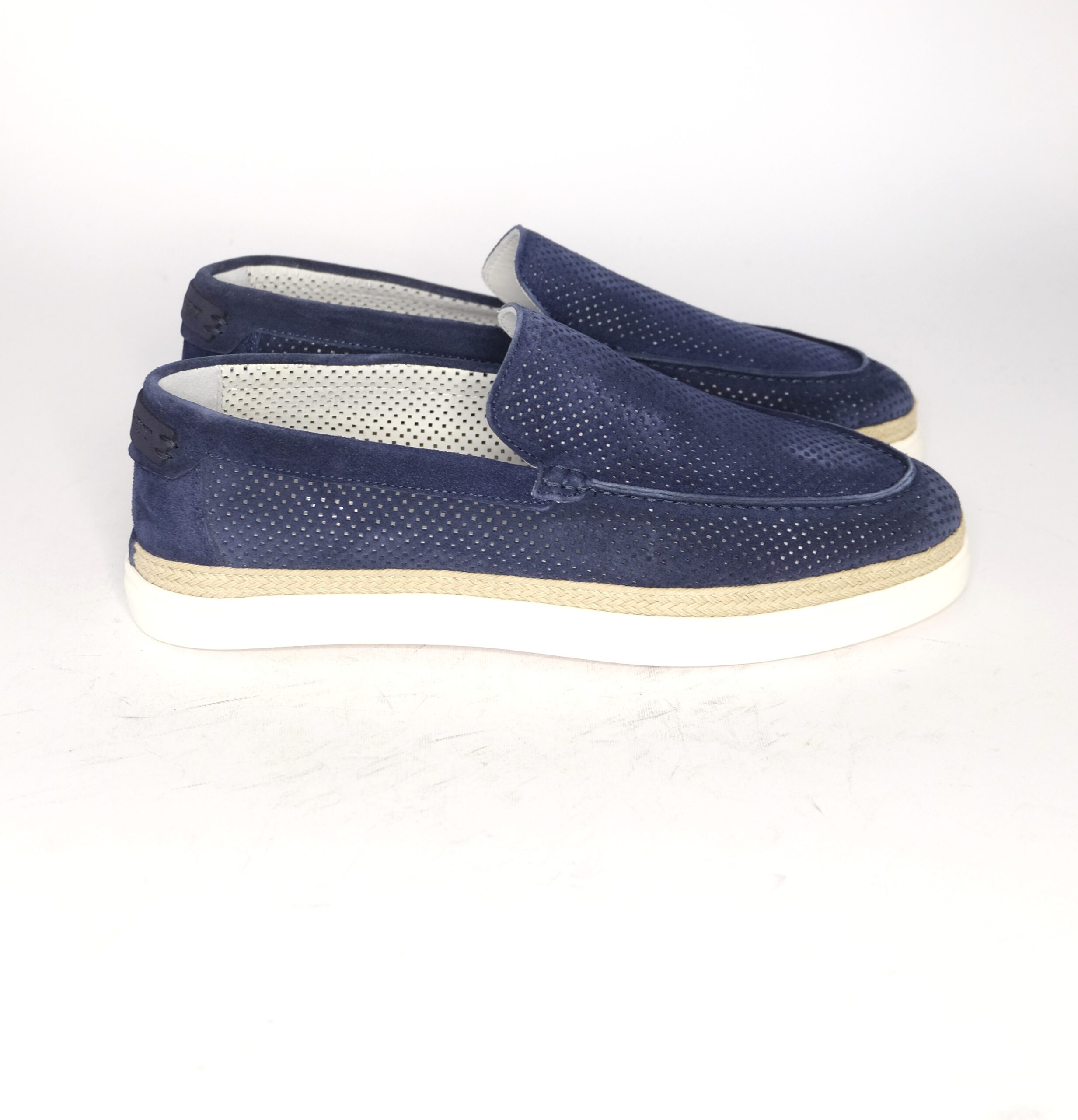Slip-on in morbidissimo suede blu forato lateralmente. Un modello innovativo grazie alla sua estrema leggerezza e al dettaglio in corda intrecciata che impreziosisce la calzatura. Ideale per il tempo libero e la bella stagione.