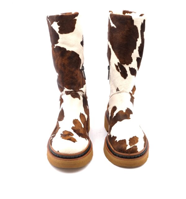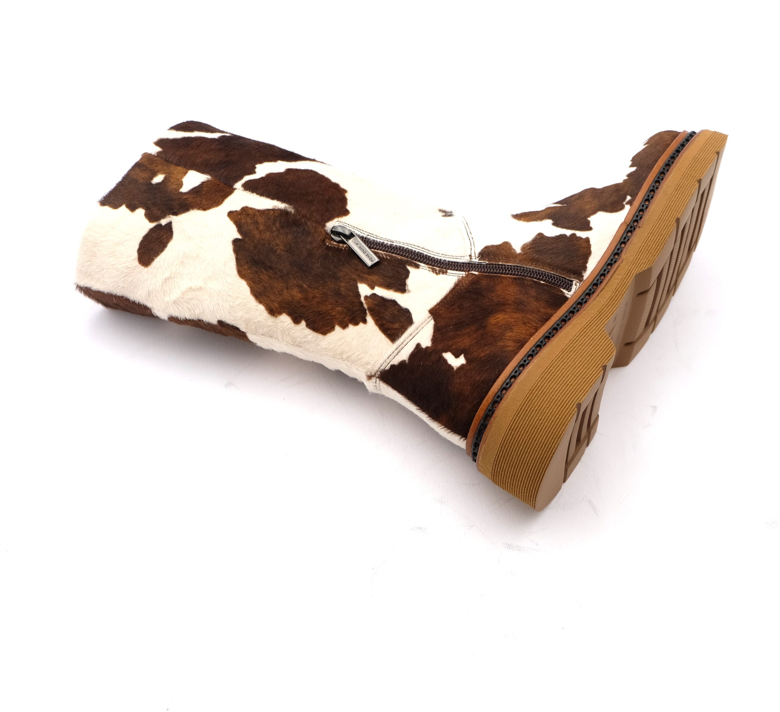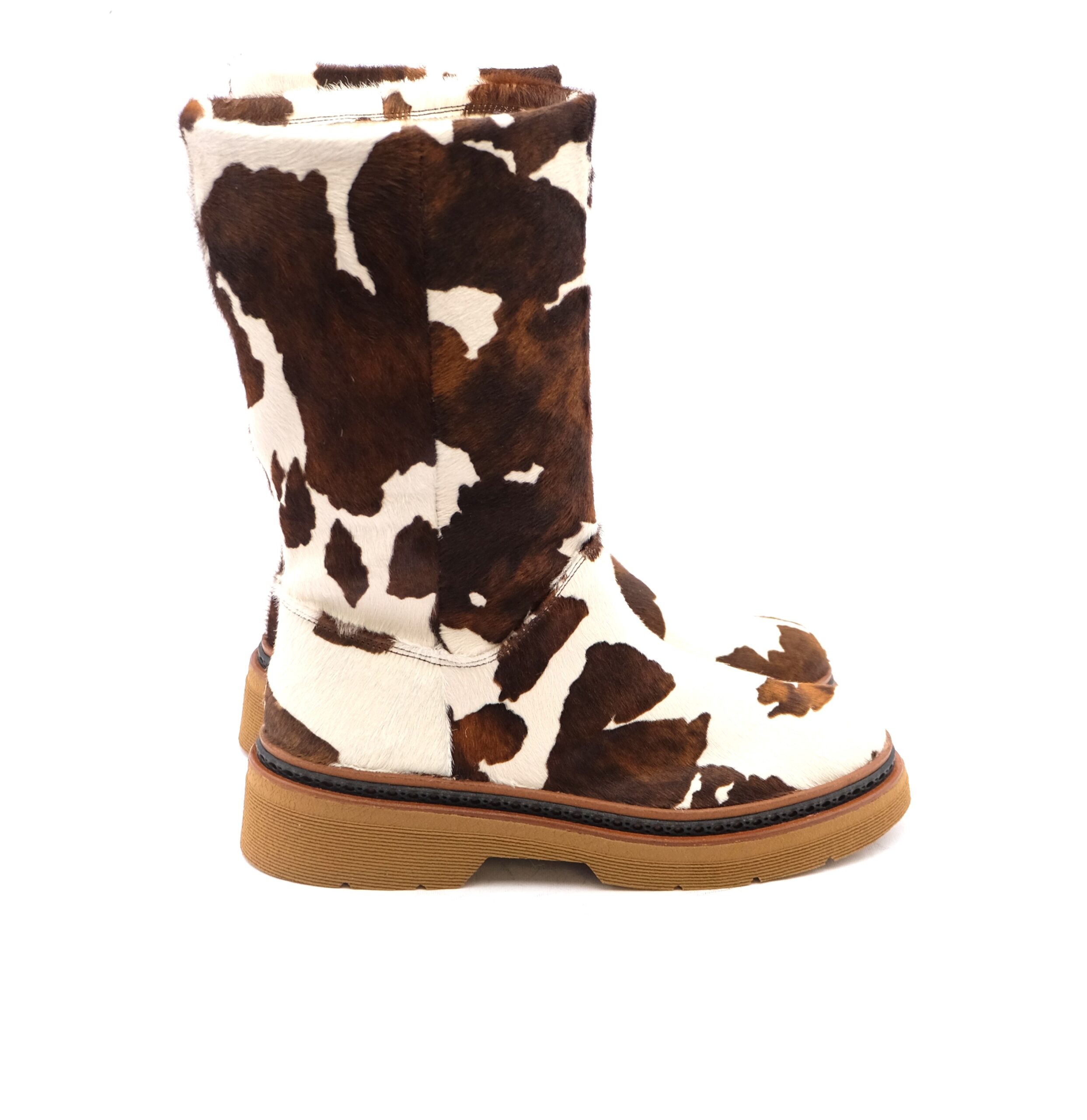 Stivale con stampa maculata bianco/marrone, cerniera laterale, fodera in pelo, suola in gomma leggera antiscivolo, waterproof , calzata standard