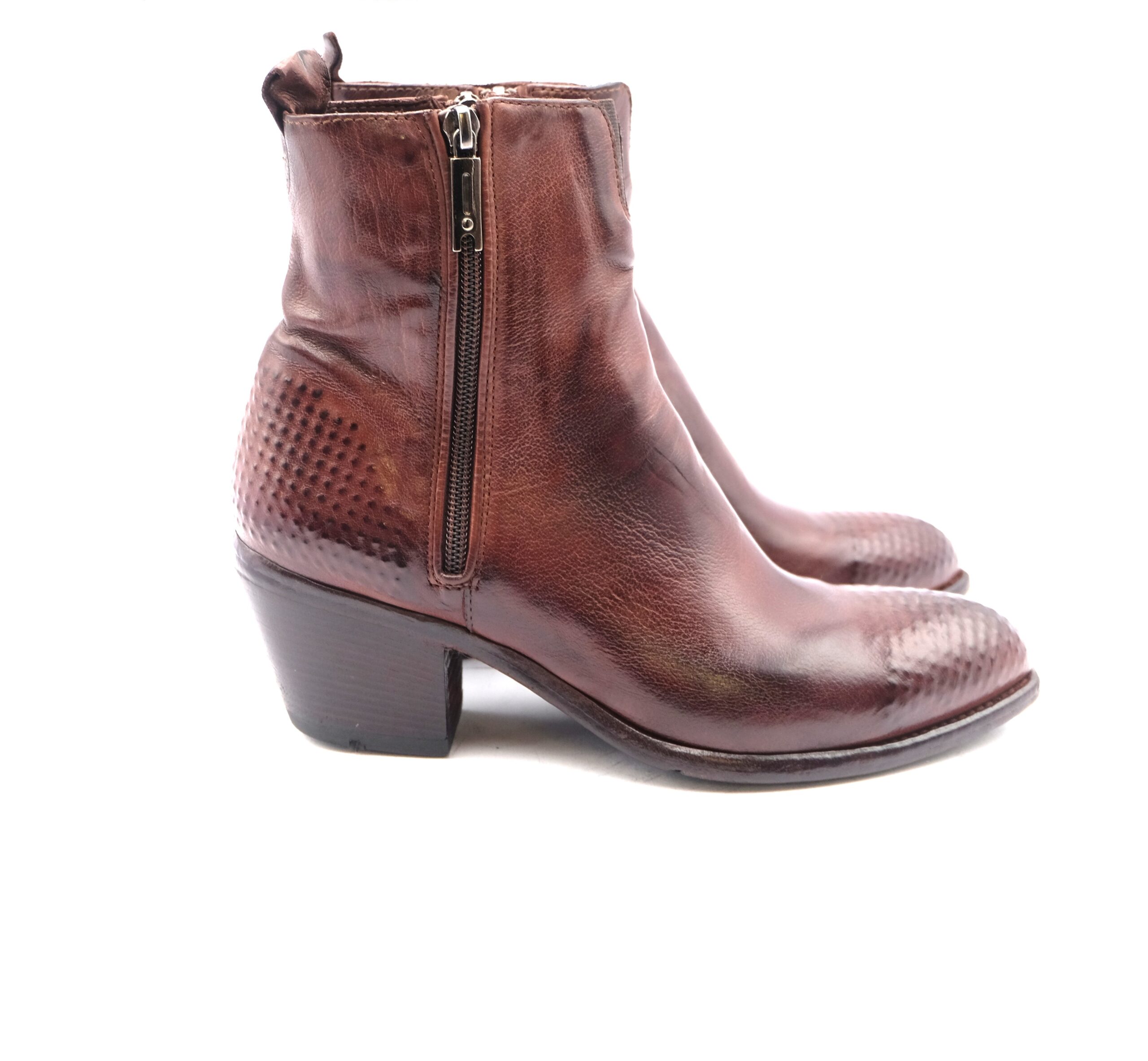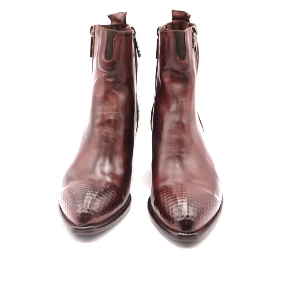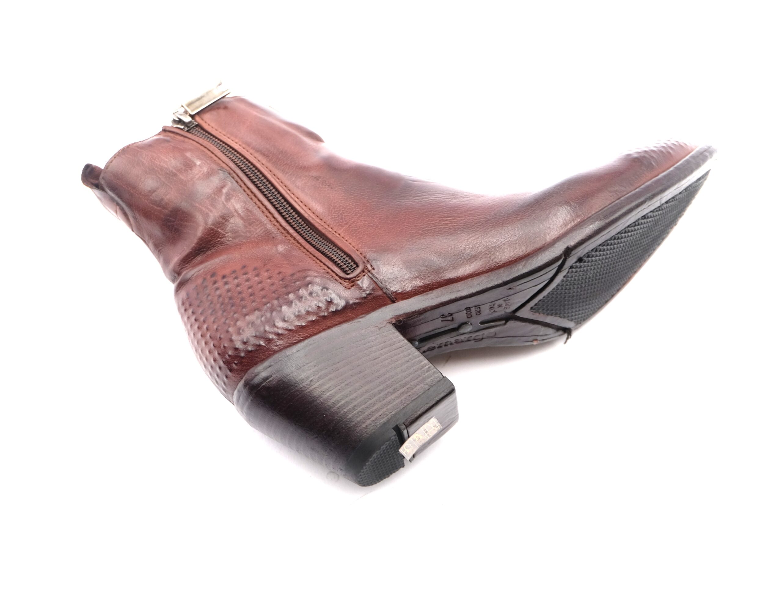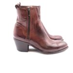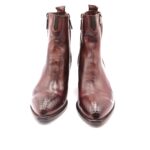 Texano con doppia cerniera in morbidissima pelle testa di moro, tacco cubano altezza 40, fodera in pelle , sottopiede imbottito, suola in cuoio flessibile con antiscivolo, calzata standard, puntale e sperone serigrafati a mano a rilievo